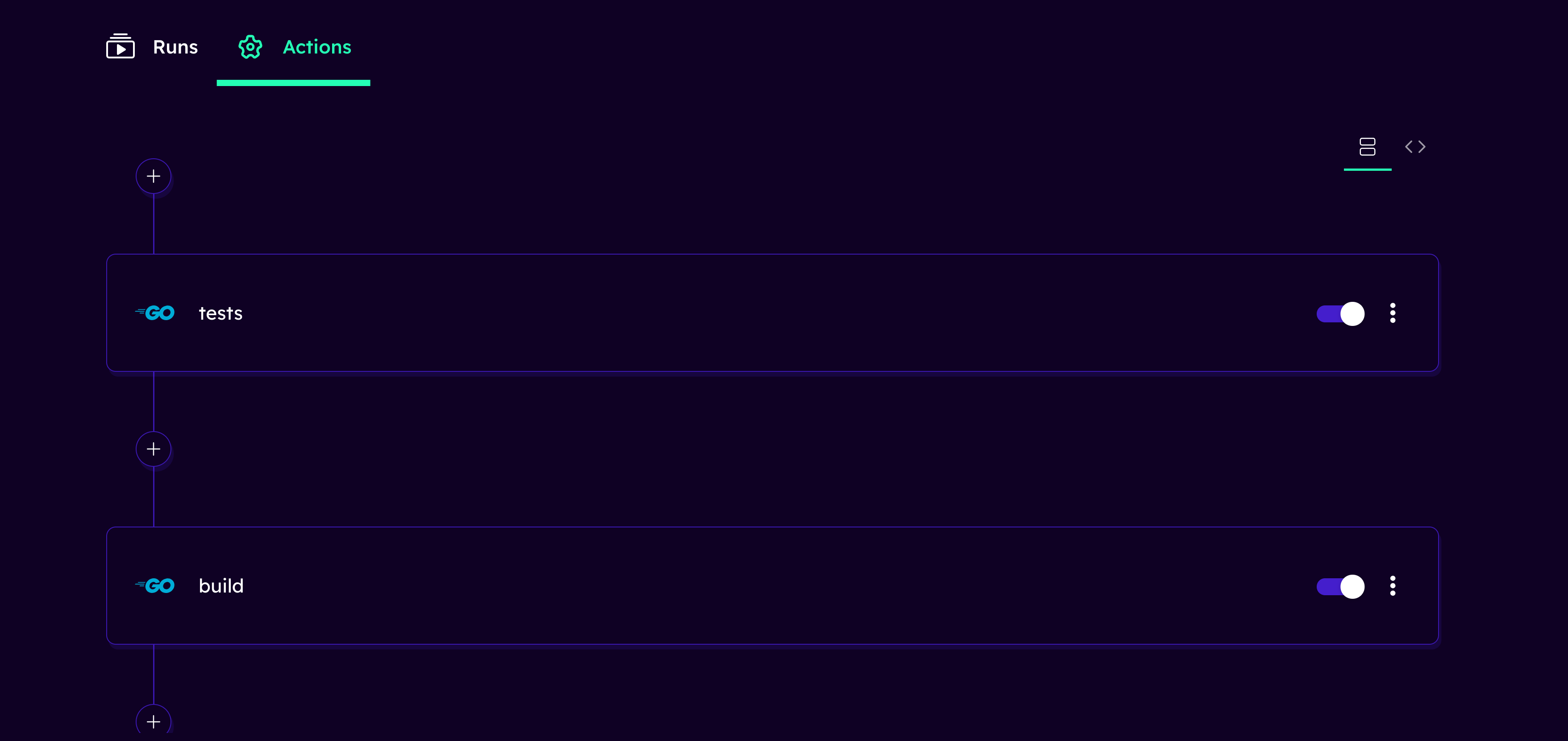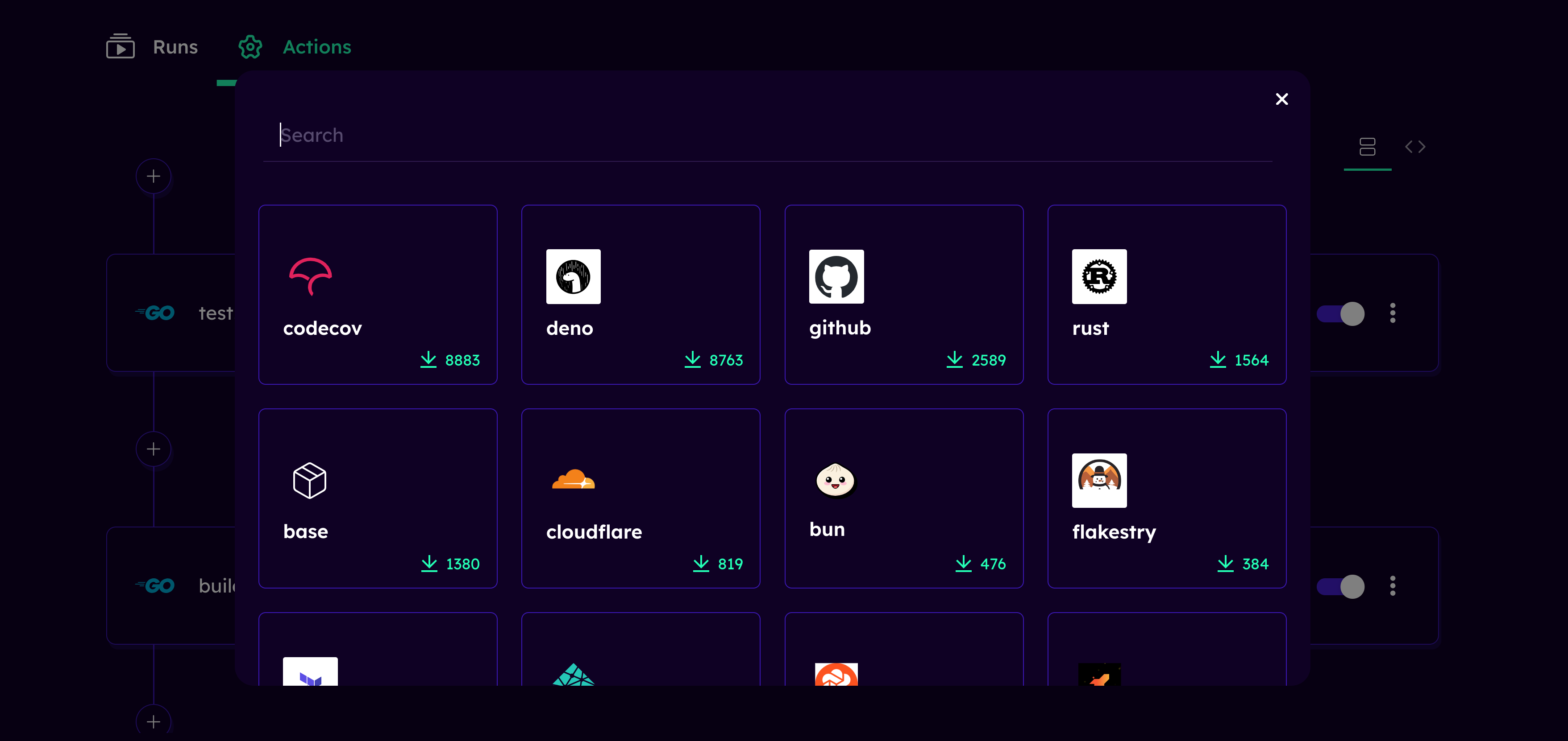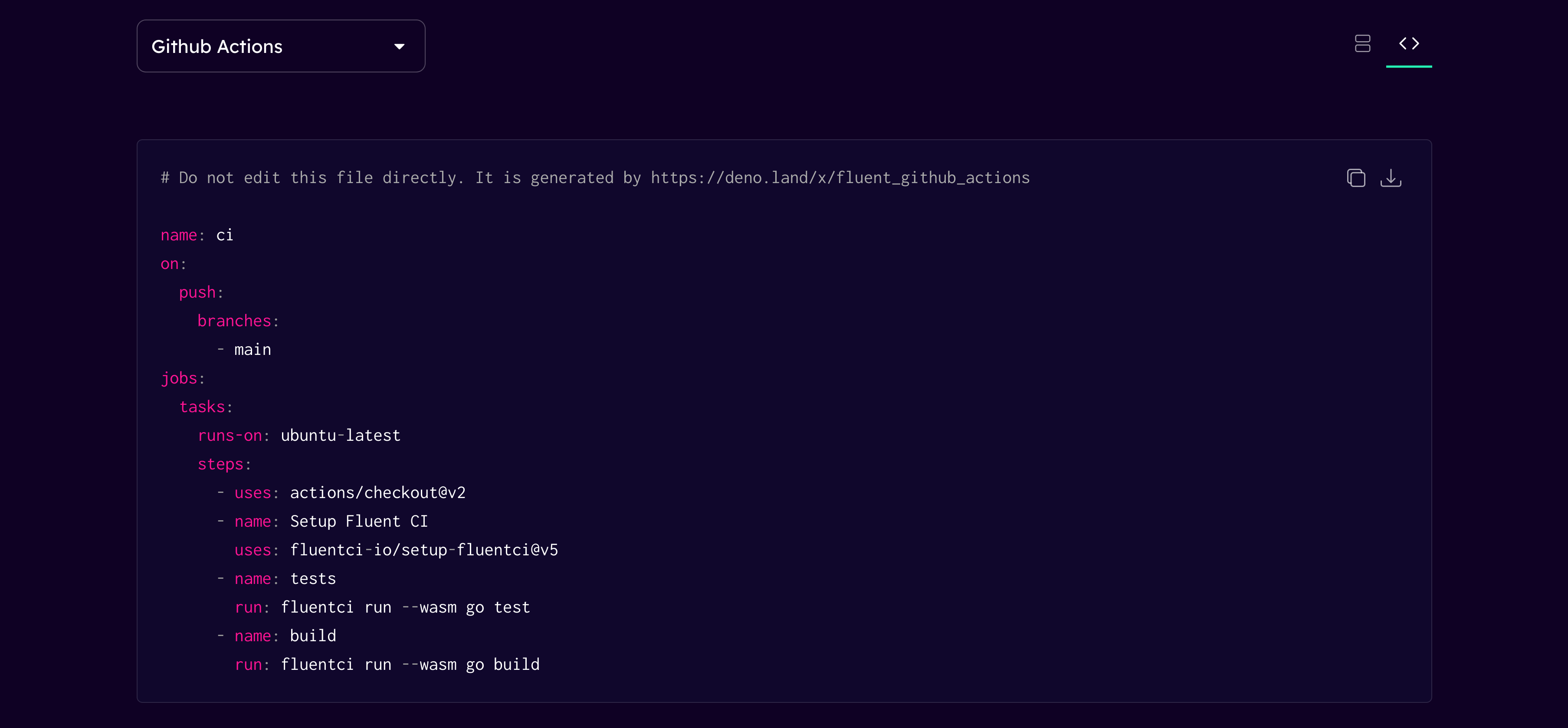 Easily compose actions to create a pipeline from FluentCI Studio composer web interface.